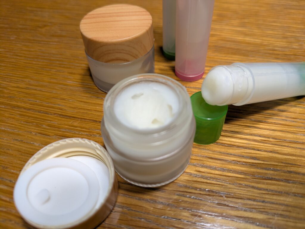 さて今月は私がいつも作り置きしている、リップクリームと万能クリームを作りました
